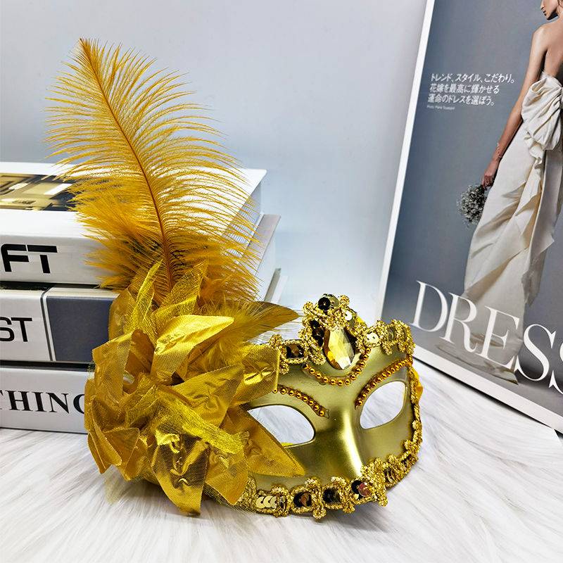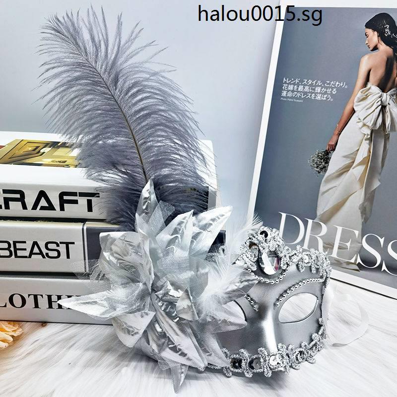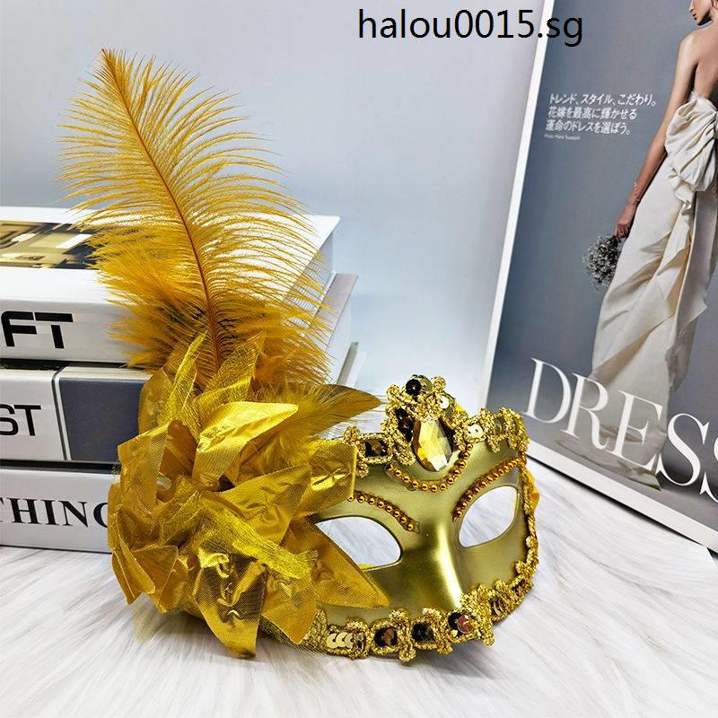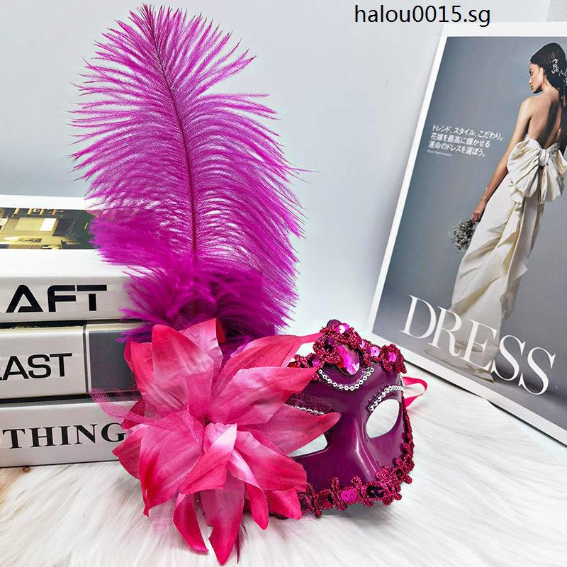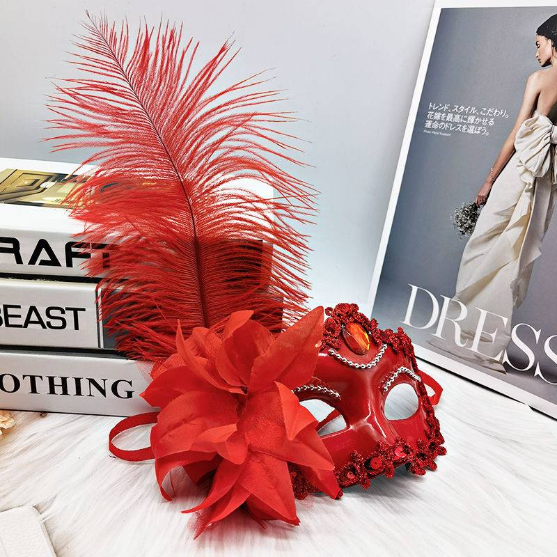 Halloween Women's Half-Face Ostrich Feather Black Sexy Mask Female Masquerade Party Dance Performance