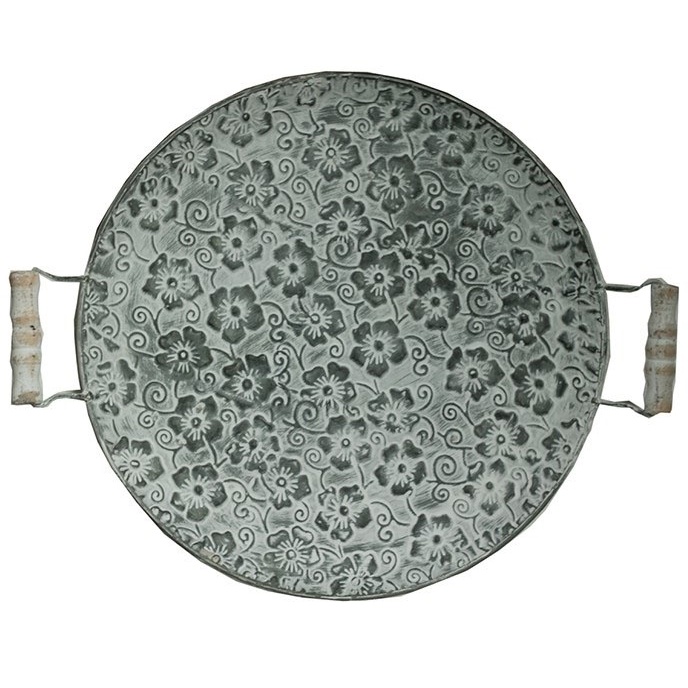 Handcrafted Round Flat Metal Plate Retro Dessert Cake Bread Plate Decorative Antique Serving Tray With Wood Handles Restaurant