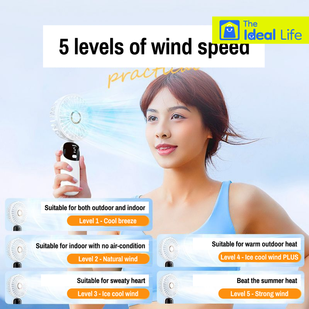 Handheld Fan Mini Portable Folding Small Fan Digital Display usb Charging Desktop Small Electric Fan