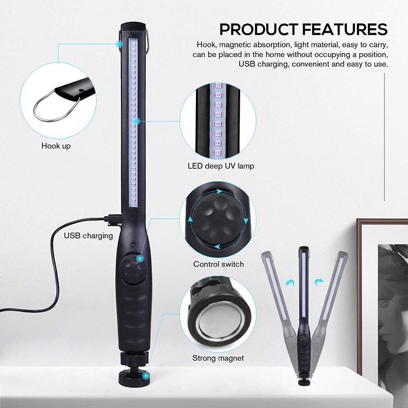 Handheld UV Germicidal Lamps 30LED UV Light Sanitizer Wand Germ-Killing Ultraviolet Sanitizer Machine USB Charging Sanitizing Lamp