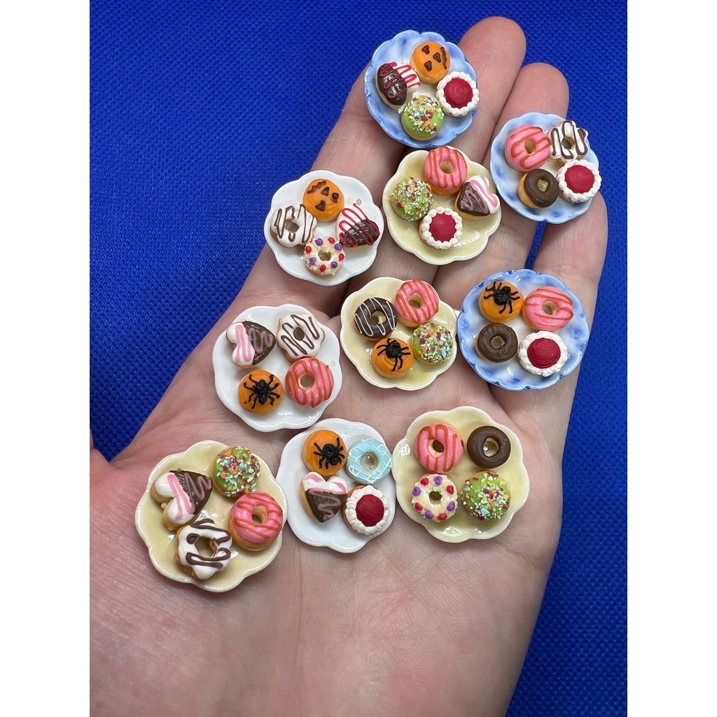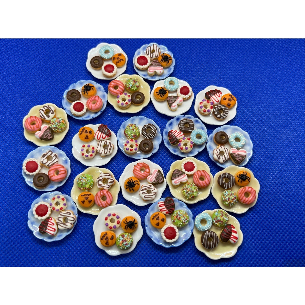 Handmade Miniature Assorted Donuts, sweet, doughnut, 1 plate, clay