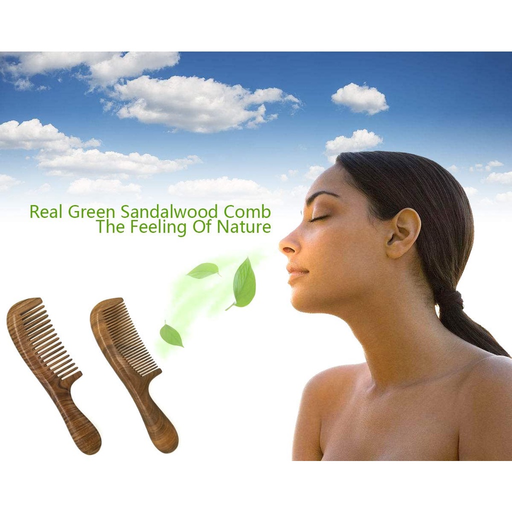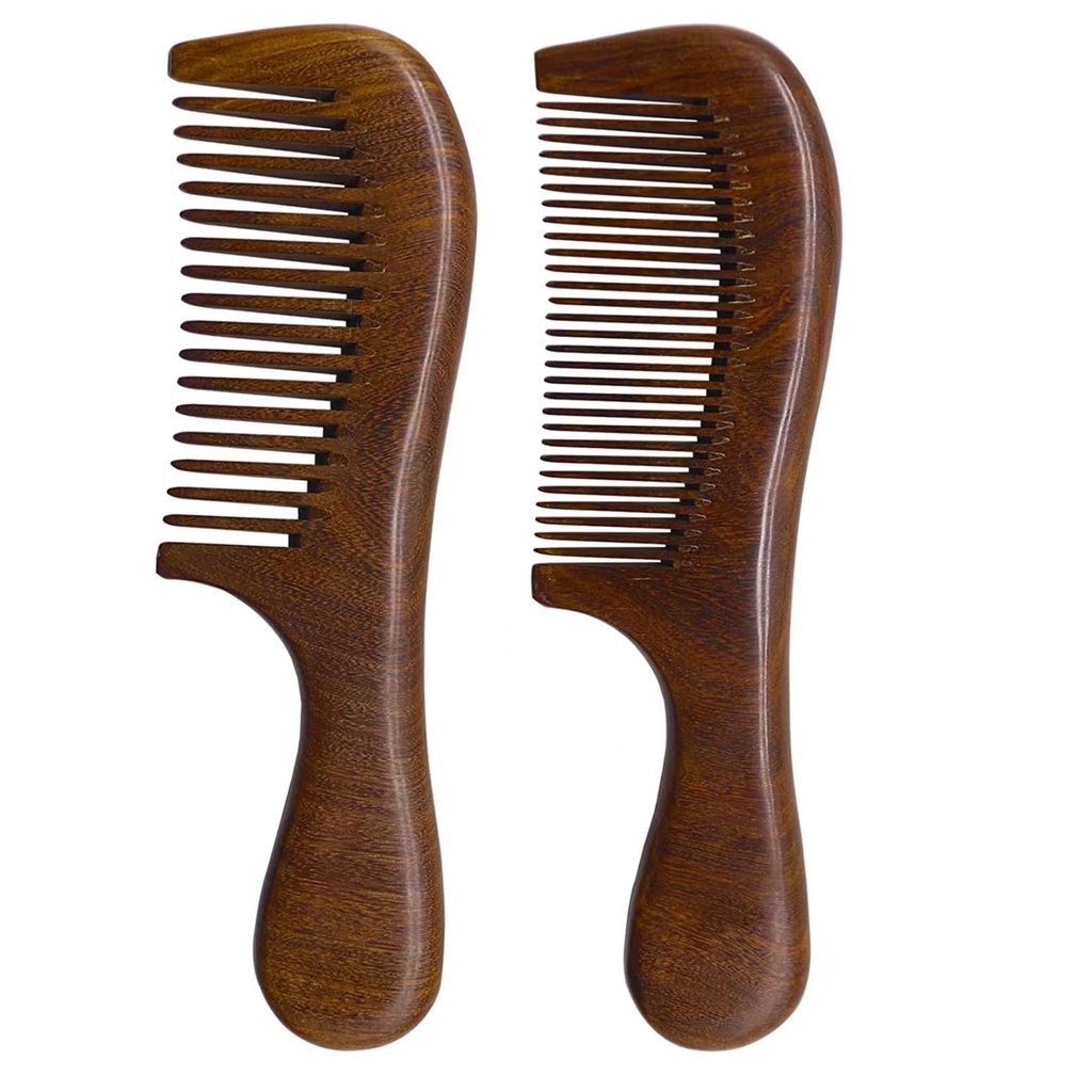 Handmade Natural Sandalwood Comb, Anti-Static Massage, Wide Teeth Thickened Handle Comb