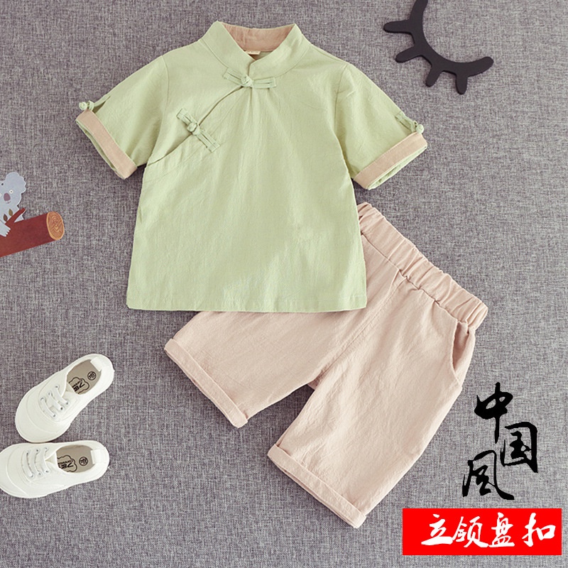 Hanfu boy cheongsam tang suit CNY kids clothes Children Solid Color Performance Costume Ancient Ethnic Style Kindergarten Uniform Elementary School Students Short-Sleeved S