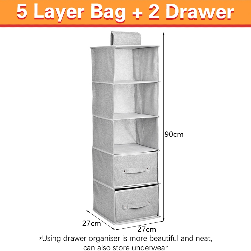 WEILIANG Hanging Clothes Storage Bag With Drawer Hanging Wardrobe Organiser Wardrobe Organizer Clothes Box