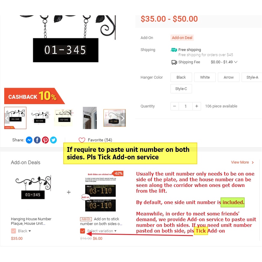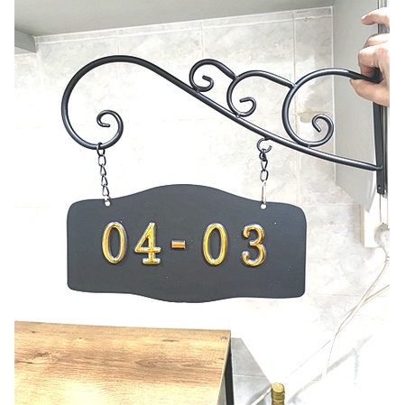 Hanging House Number Plaque, House Unit Number Plate including iron art hanger , Acrylic plate, 3D number(Fine Lotus)