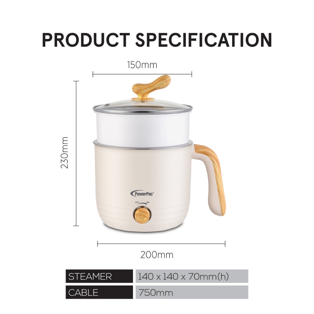 PowerPac Stainless Steel Multi Cooker, Steamboat, Steamer 1.2L (PPJ2012)