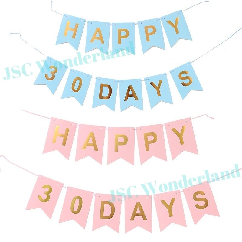 Happy 30 Days Banner Blue Color Banner Pink Color Banner For Baby Full Month Party Decoration