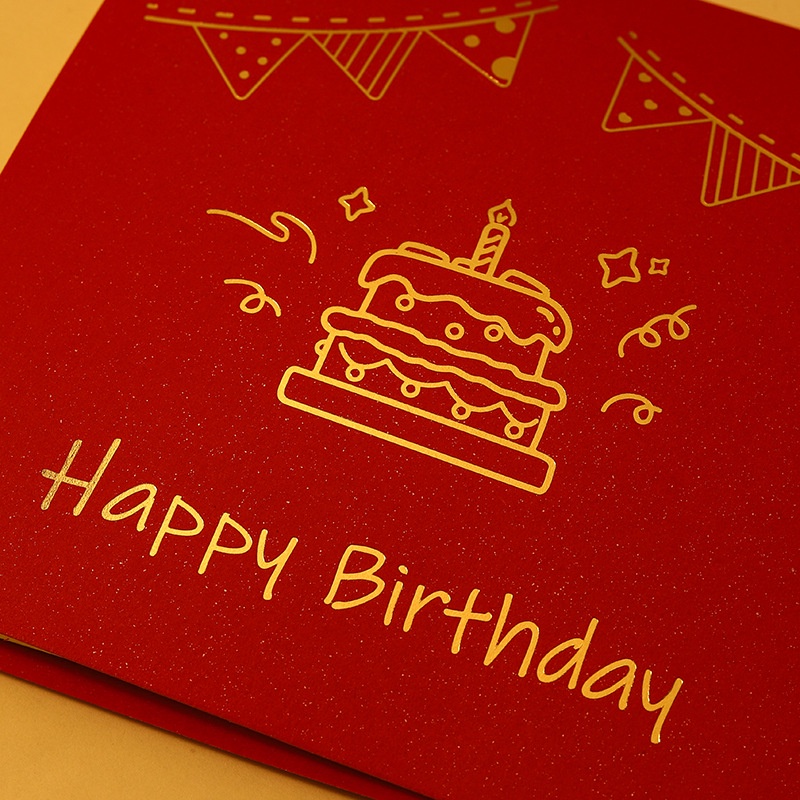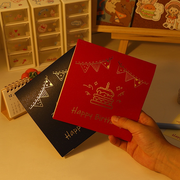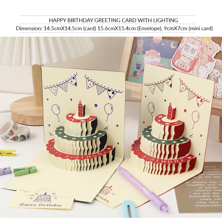 Happy Birthday 3D Pop up Greeting Cards with Envelope | Red / Blue Color | Invitation Card | Laser Cut | Cake | Lighting