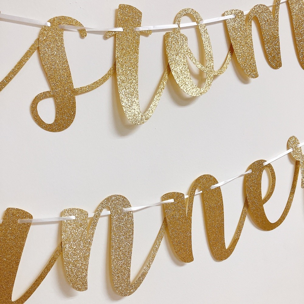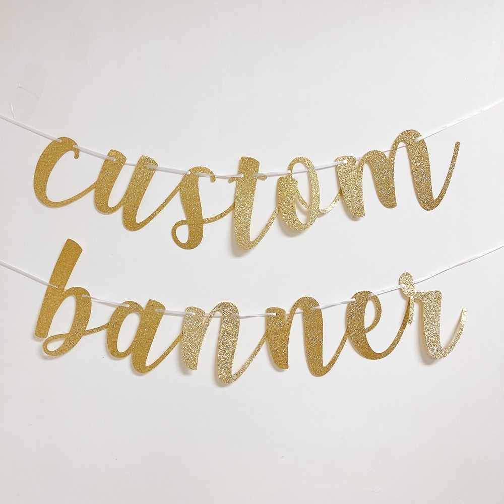 Happy Birthday Banner Custom Cursive Glitter Gold Script Font Banner