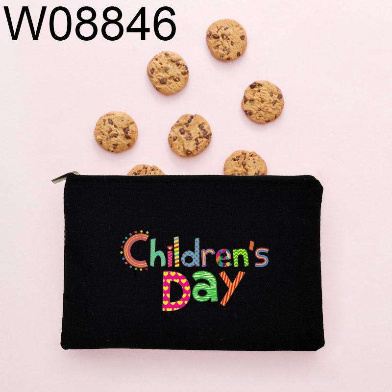 Happy Children's Day Canvas Pouch Student Pencil Bag Children Snack Sundries Storage Bag Gift for Children