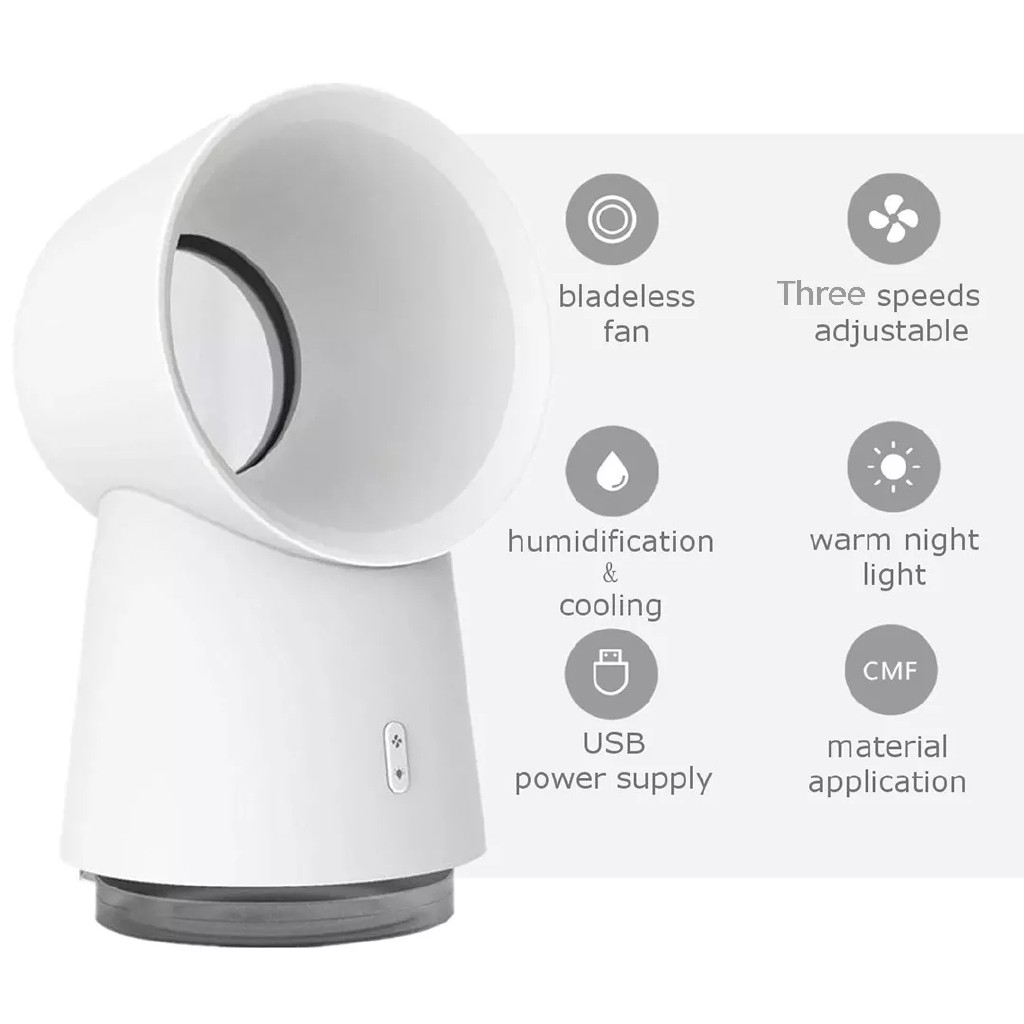 Happy Life 3 In 1 Mini Cooling Fan Bladeless Desktop Fan Mist Humidifier W/ LED Light