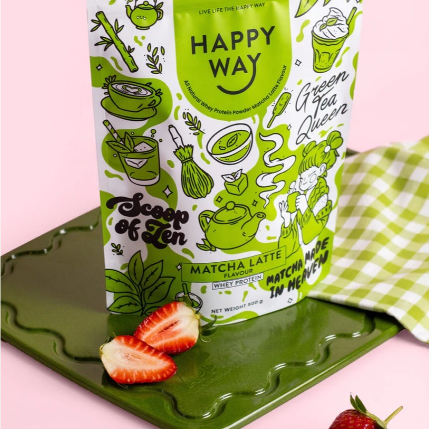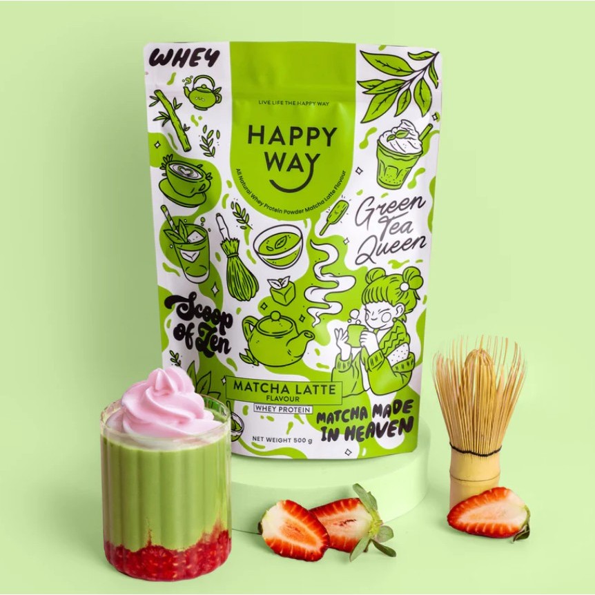 Happy Way Whey Protein Powder Matcha Latte 500g | 100% Natural, Grass-fed Whey, Non-GMO, No Added Sugar