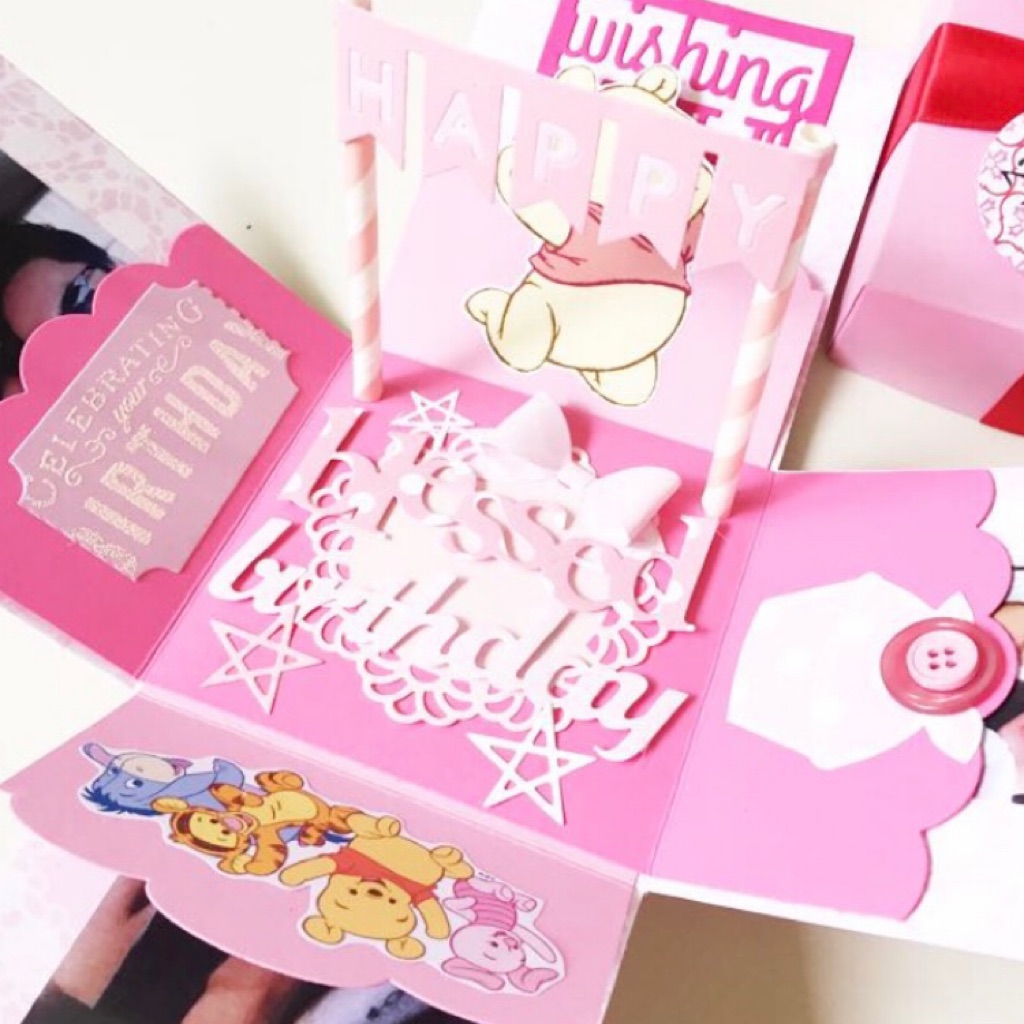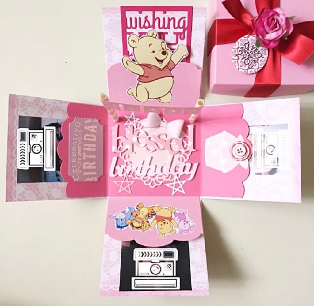 Happy blessed birthday Winnie the Pooh Explosion Box Card