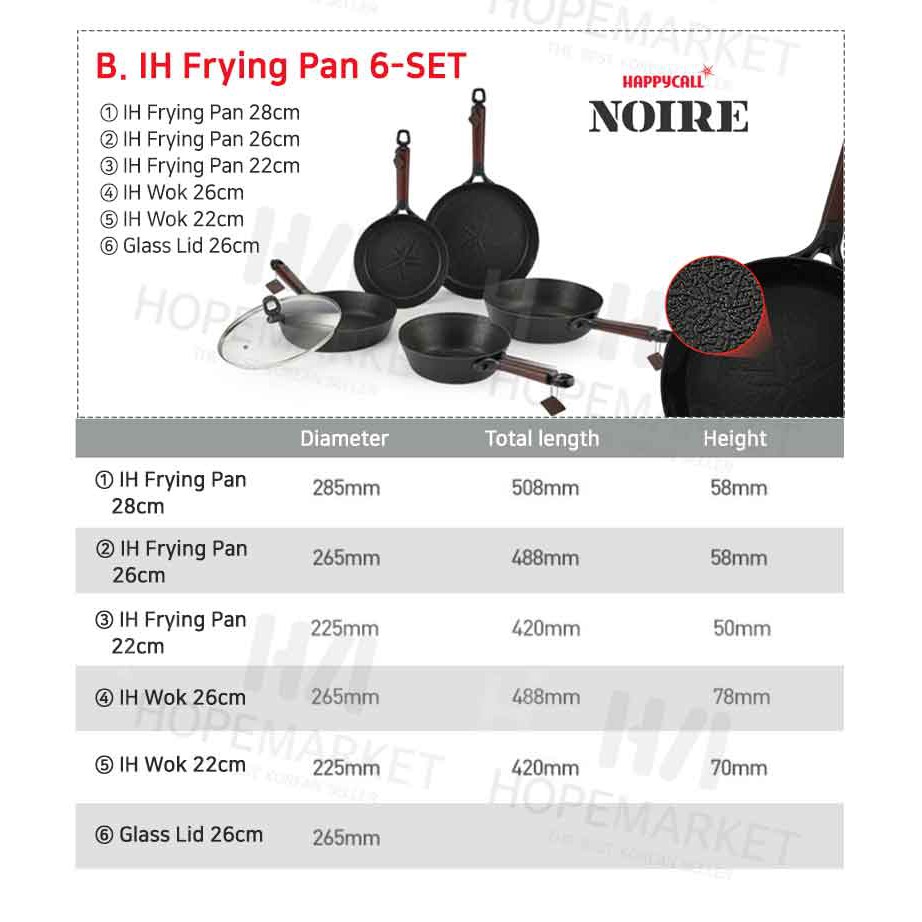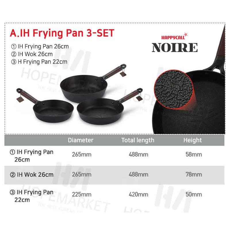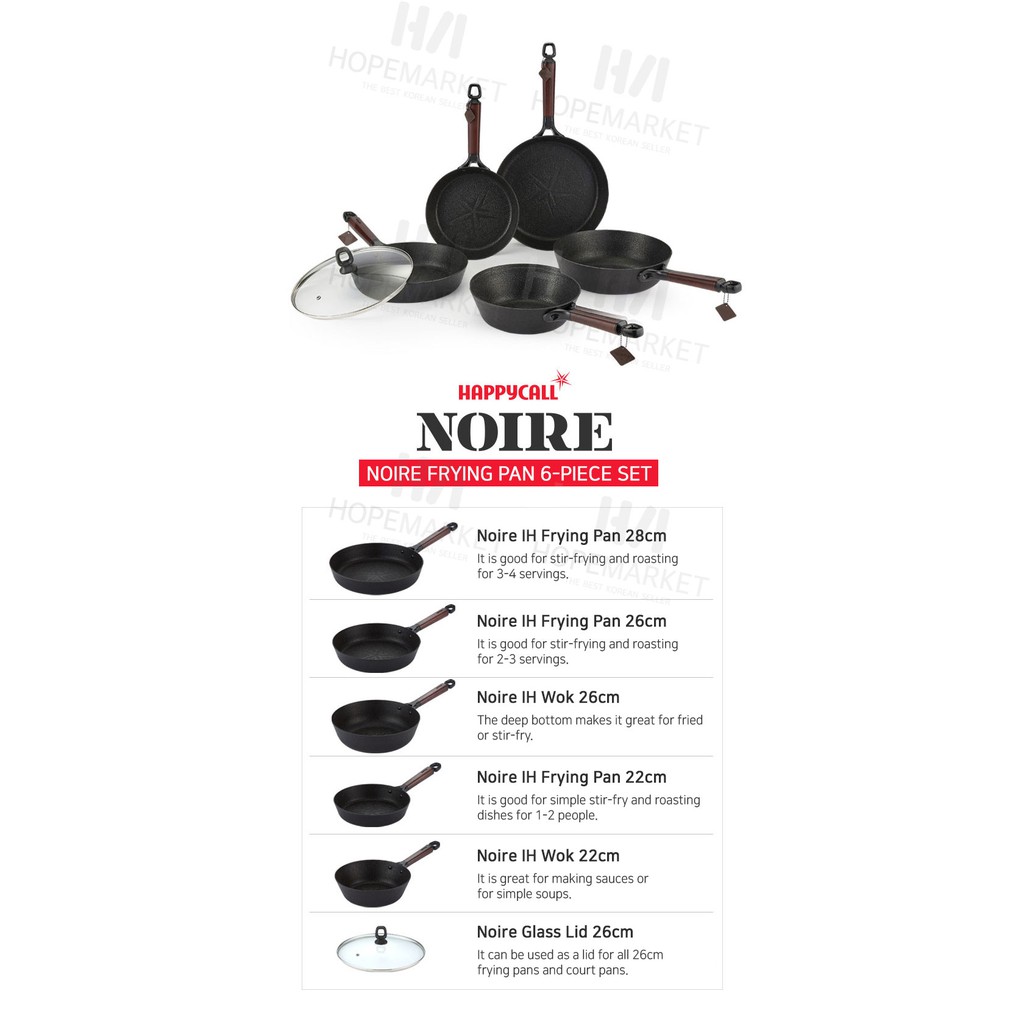 HappyCall NEW IH Noire Titanium + Graphene frying pans and woks 6set / cooking Induction pan pot
