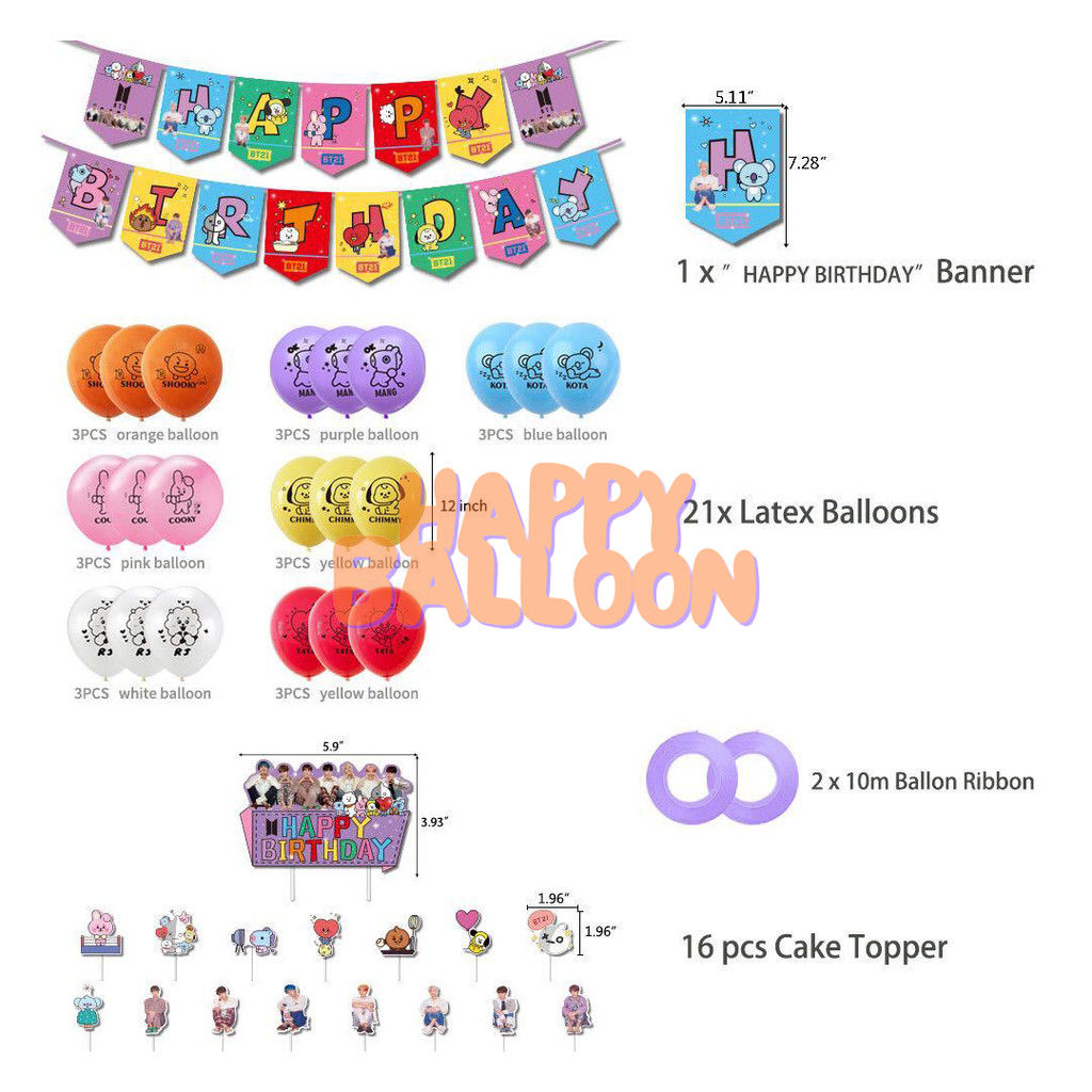 HappyBalloon BTS Birthday Decoration Package / Happy Birthday BTS / BT21