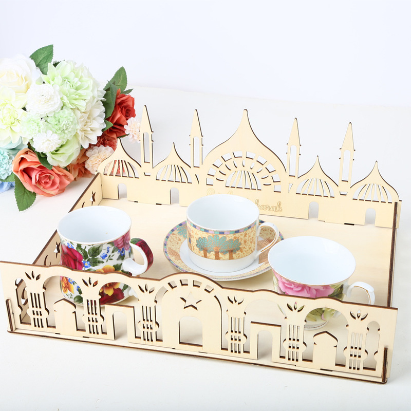 Hari Raya Wooden Eid Food Tray Eid Mubarak Decor for Home Islamic Ramadan Kareem Muslim Party Decor