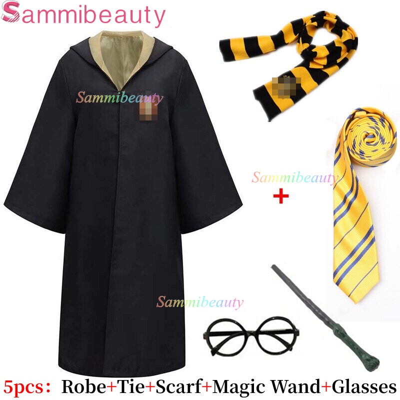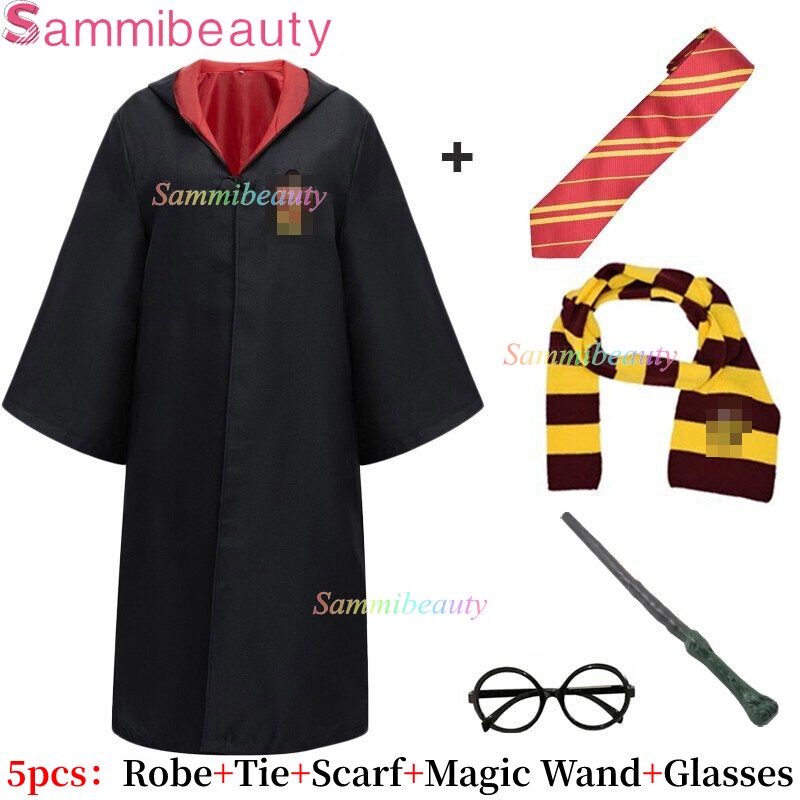 Harry Potter 5-piece Halloween Cosplay Costume Robe School Party Magic Cloak Kids&Adult Set