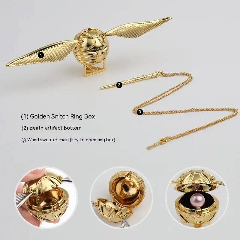 Harry Potter Golden Snitch Ring Box Jewelry Box Proposal Wedding Wings Brass Real Gold Plated