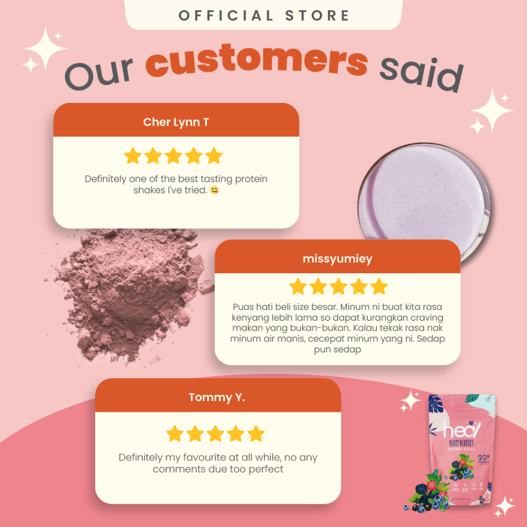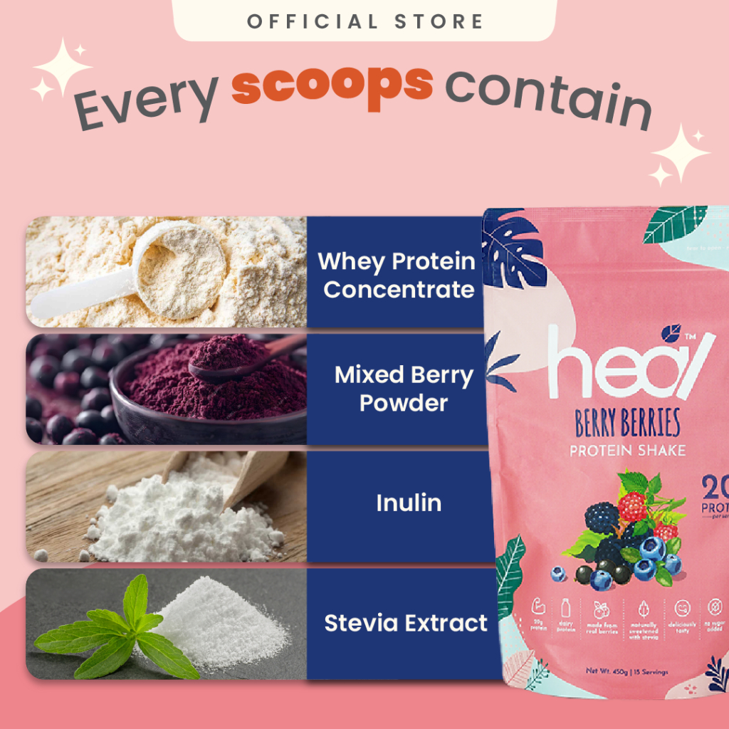 Heal Berry Berries Whey Protein Shake Dairy Based Powder (450g - 15 Servings) - HALAL
