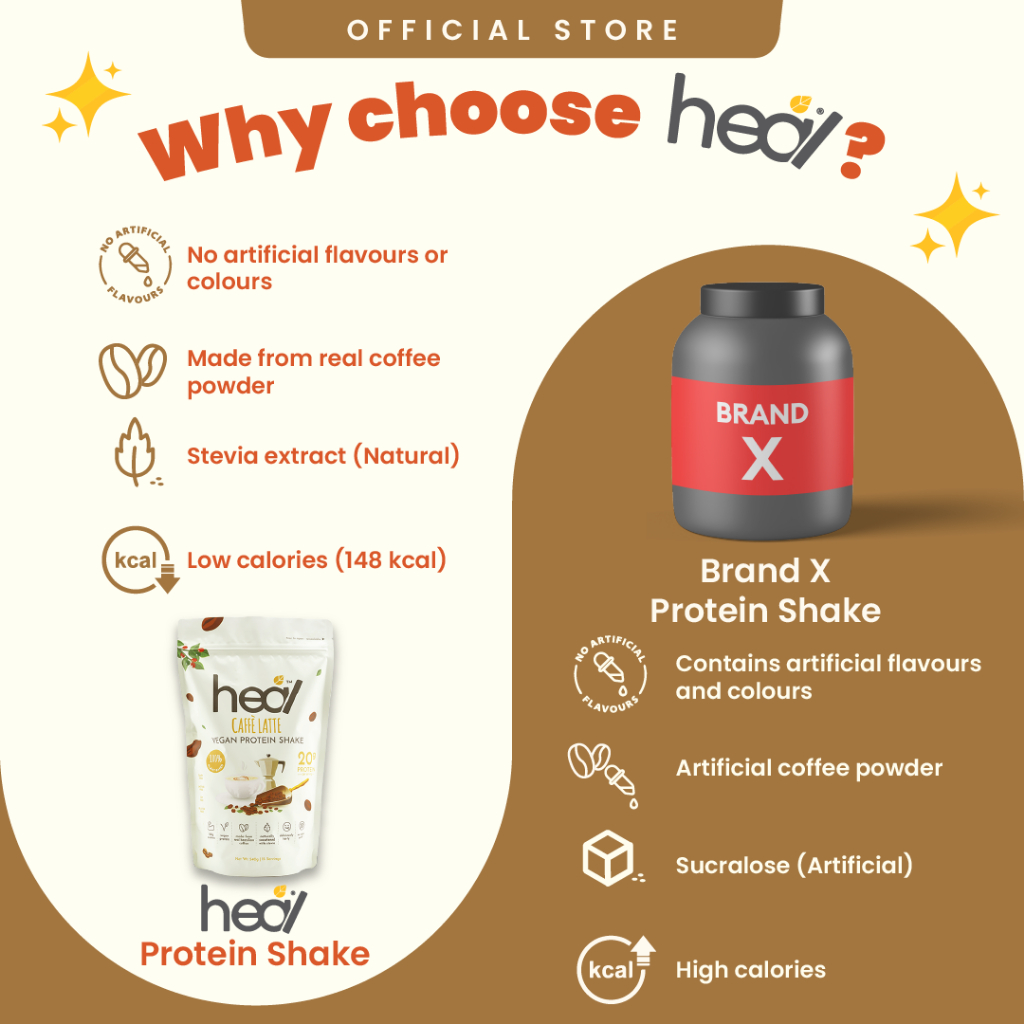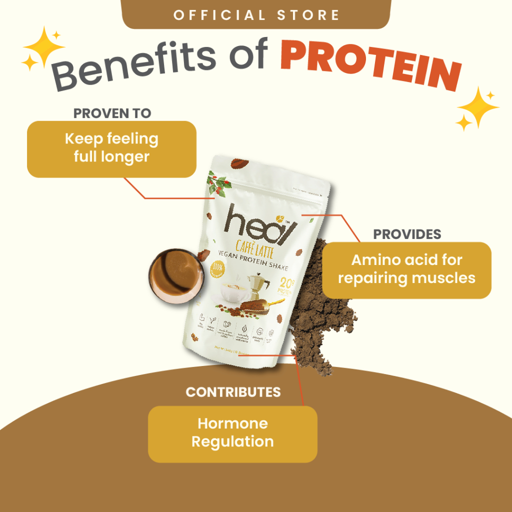 Heal Caffè Latte Vegan Pea Protein Shake Plant Based Powder (540g -15 Servings) - HALAL