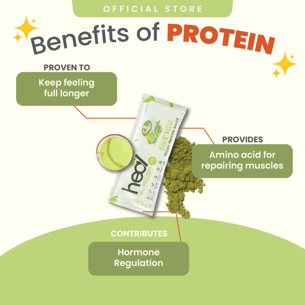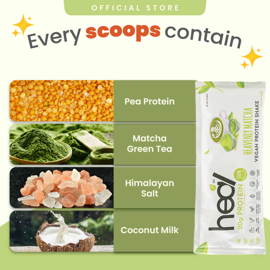 Heal Heavenly Matcha Vegan Pea Protein Shake Plant Based Powder (15 Sachets) - HALAL
