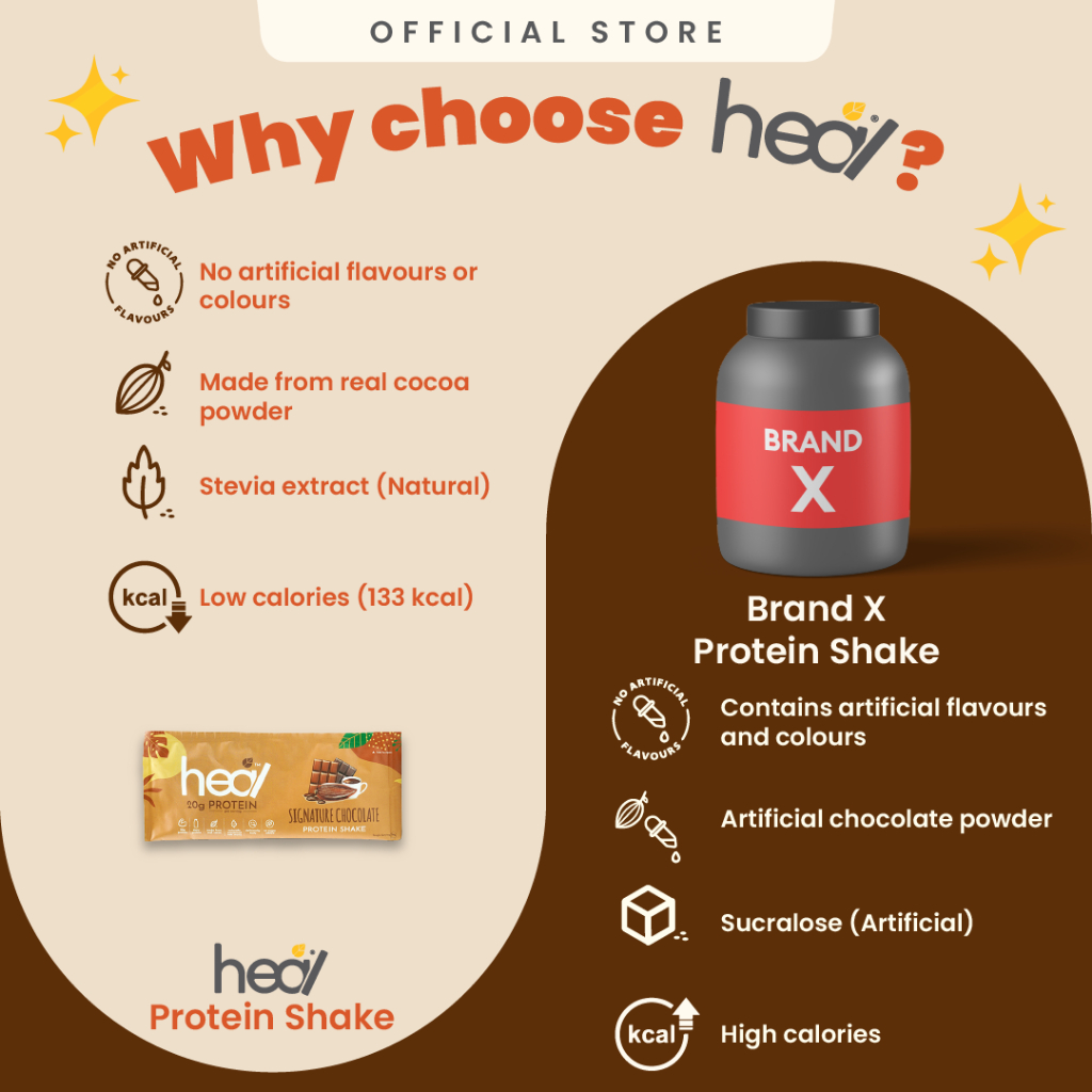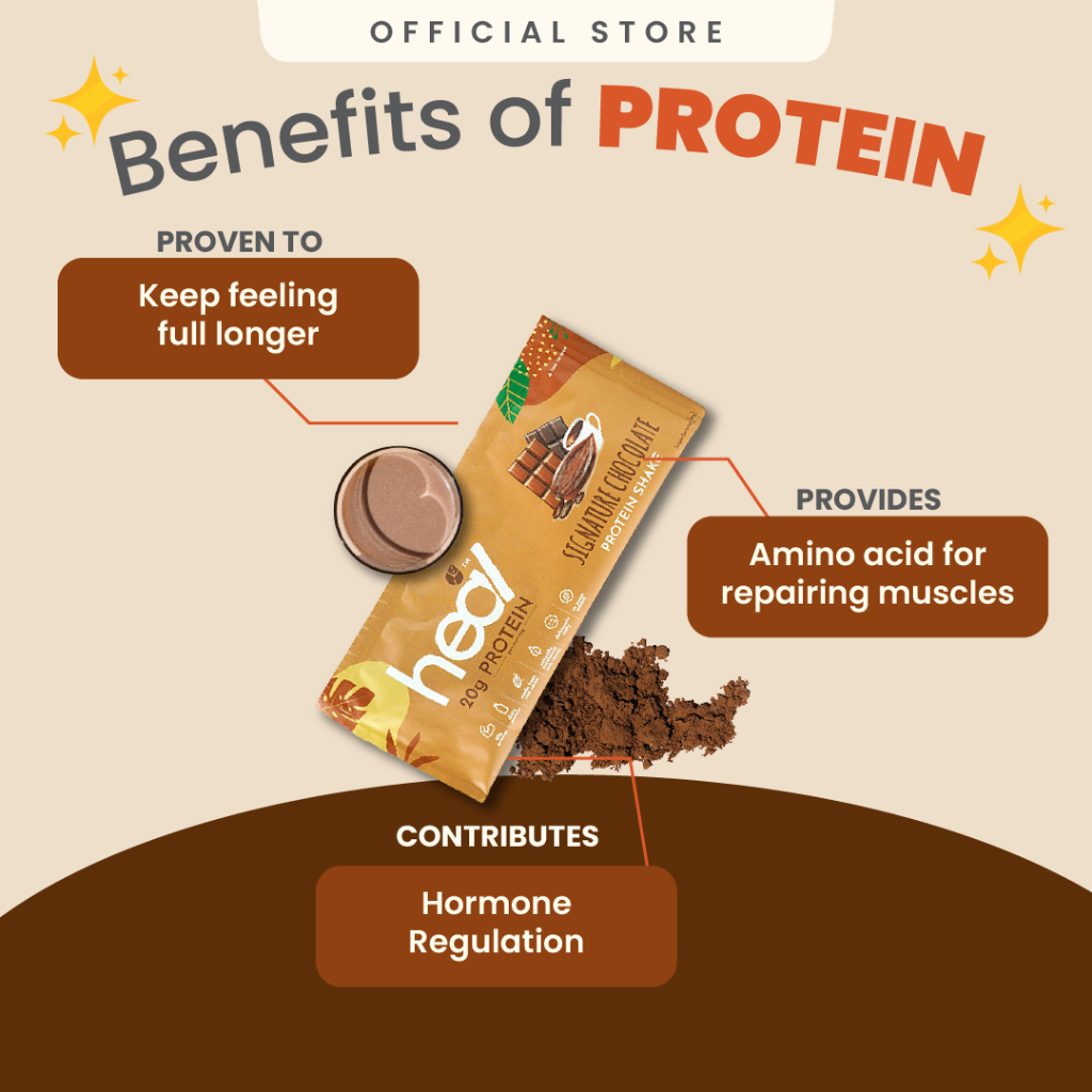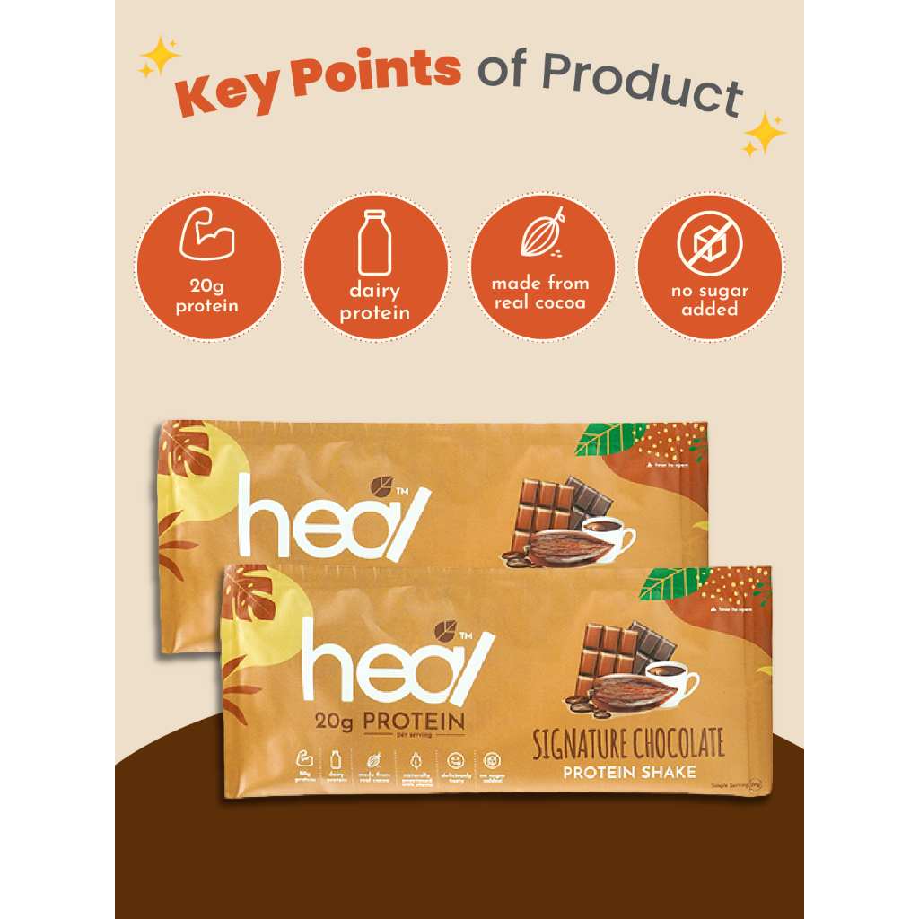 Heal Signature Chocolate Whey Protein Shake Dairy Based Powder (3 Sachets) - HALAL