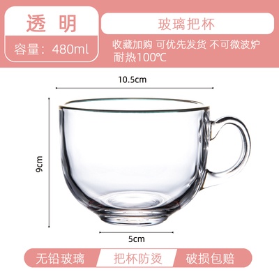 Heat Resistant Simple Pretty Big Round Glass Cup with Handle for Coffee / Tea / Yoghurt / Parfait