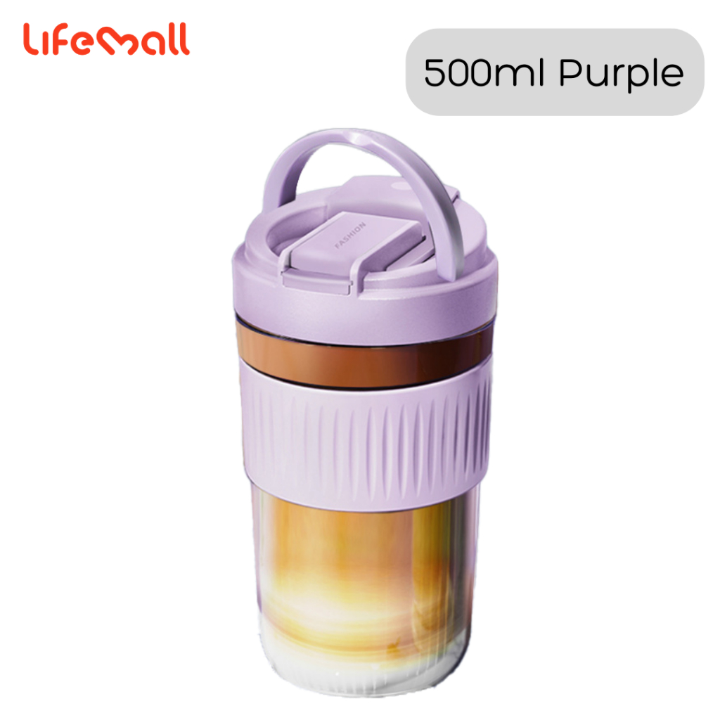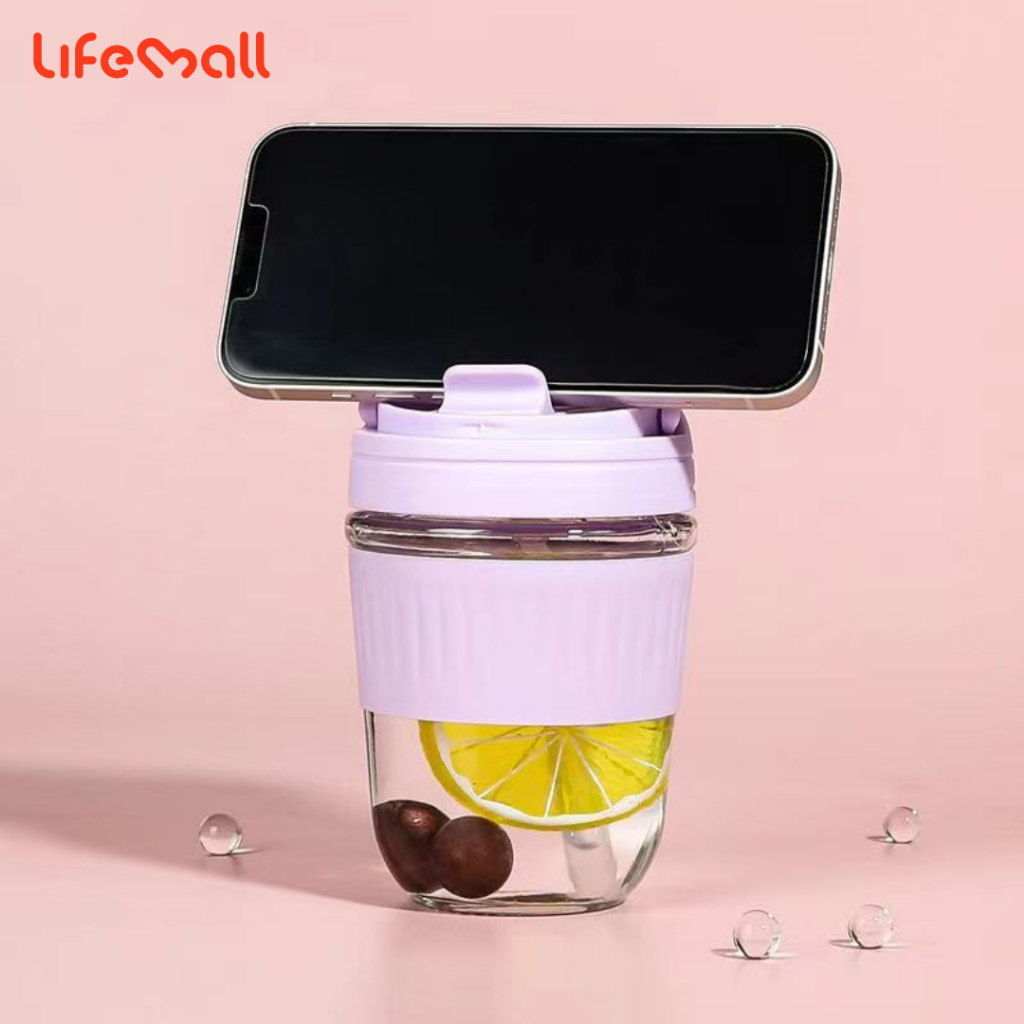 LifeMall - 350/500ml Glass Coffee Mug with Straw and Handle | Cup with Lid | Office Coffee Cup