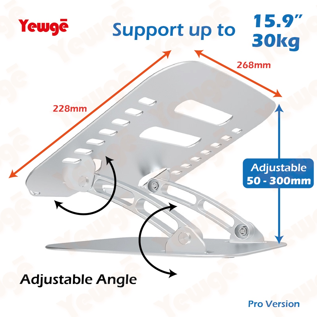 Heavy Duty Aluminum Laptop & Tablet Stand Reinforced Joints Adjustable Height For All Laptop