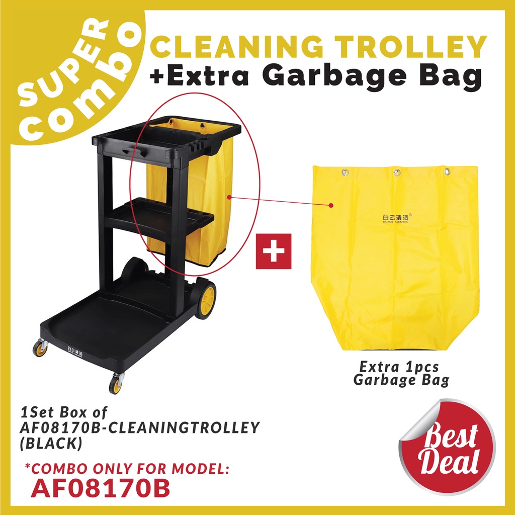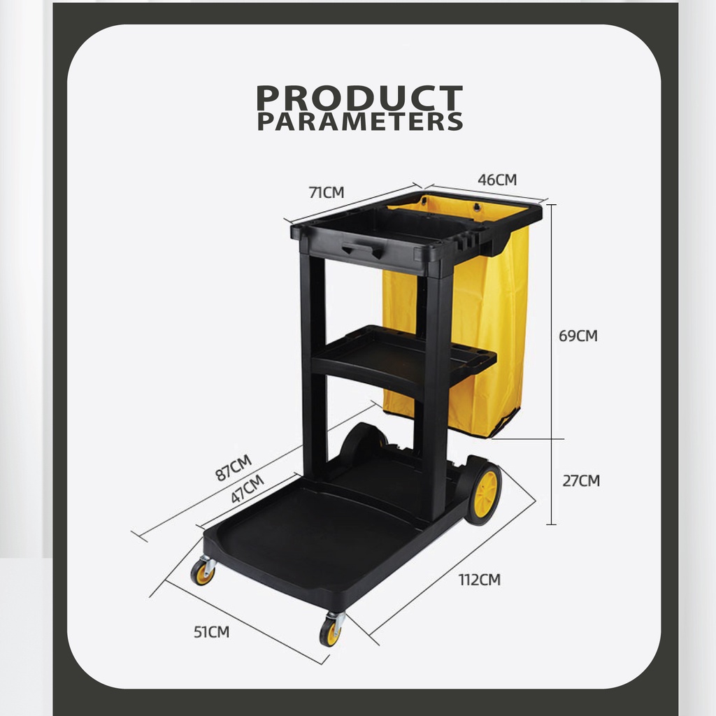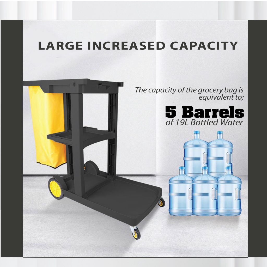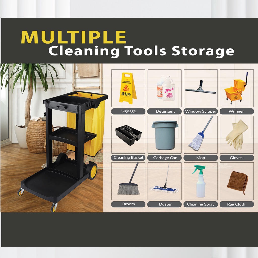 Heavy Duty Cleaning Trolley with Mop Broom Holder Multi Purpose Housekeeping Cleaner Janitor Cart Troli Restaurant Hotel