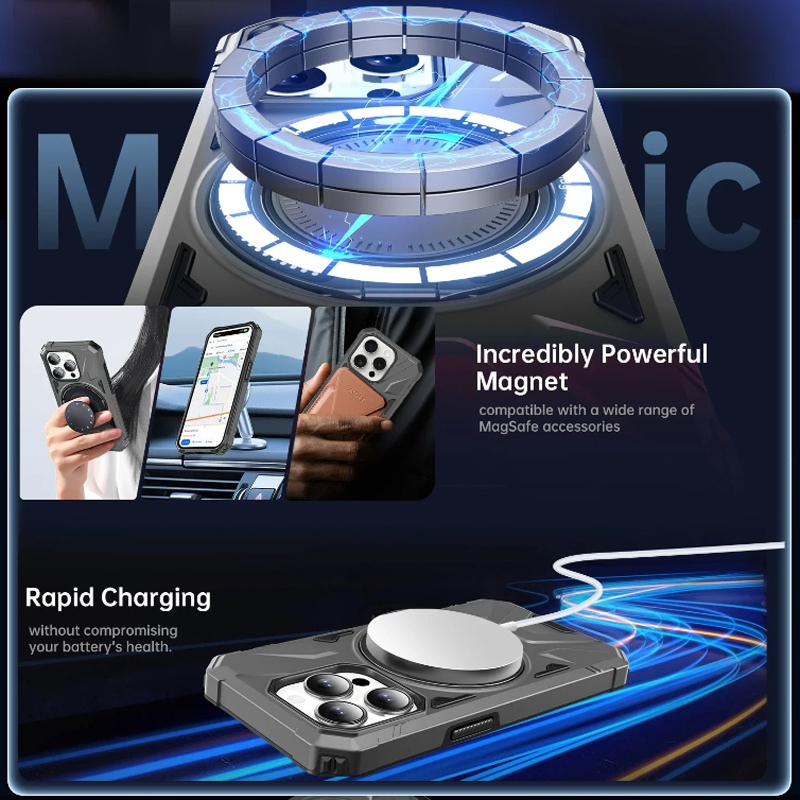 Heavy Shockproof Hard Case with Stand for IPhone 17 Pro Max 16 Pro Max 15 Pro Max
