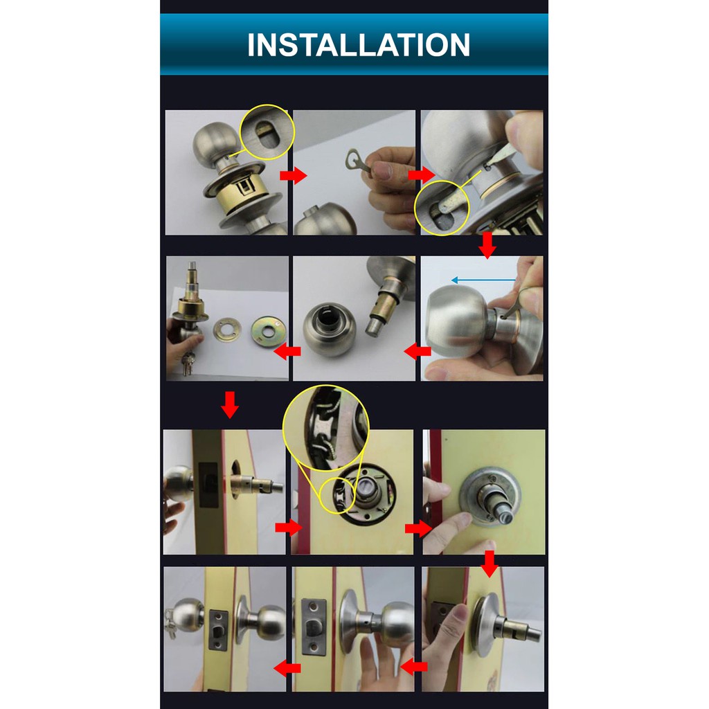 Heavyduty Stainless Steel Cylindrical Door Lock Set Bathroom Toilet Cylinder Door / Tombol Pintu Kunci Pintu Bulat Papan