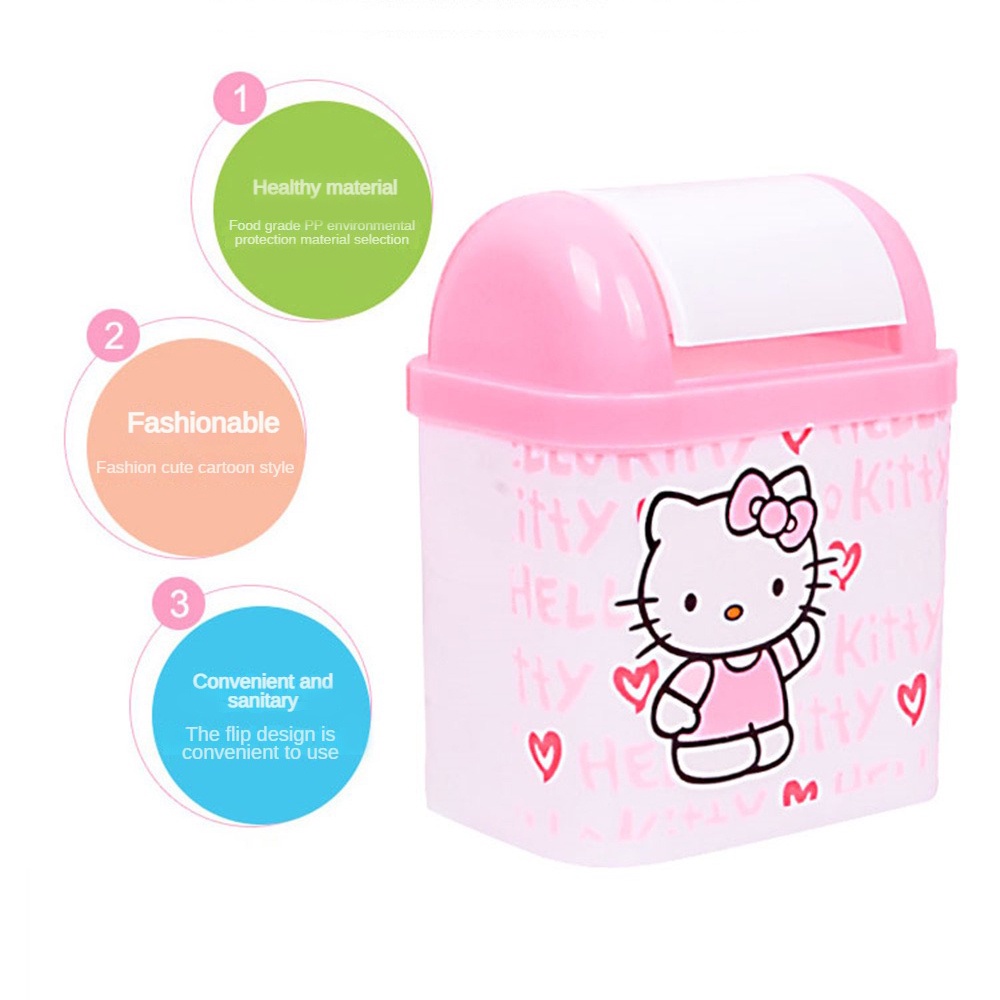 Hello Kitty Desktop Trash Can With Cover Creative Small Mini Living Room Household Trash Can Storage -MON