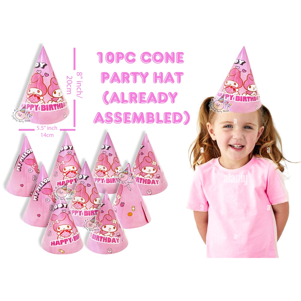 Hello Kitty Party Hat 20cm Cone Shape 10pcs