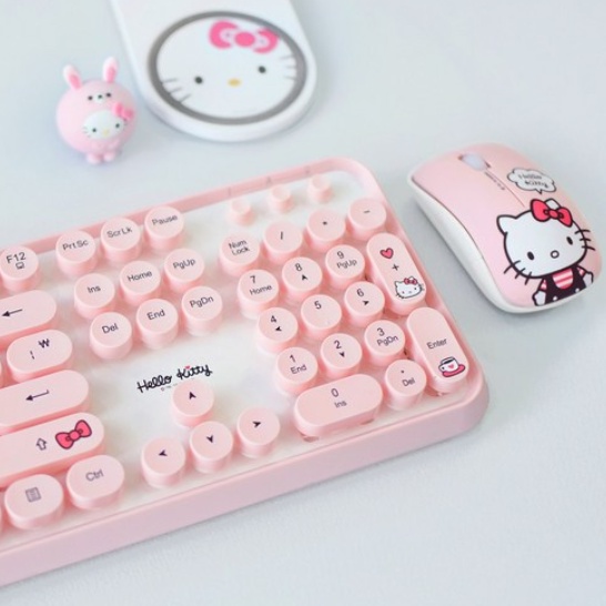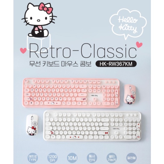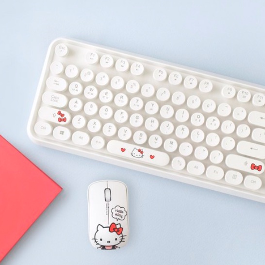 Hello Kitty Retro Wireless Keyboard 1p & Mouse 1p Set (White / Pink) (+Random Mouse Pad)