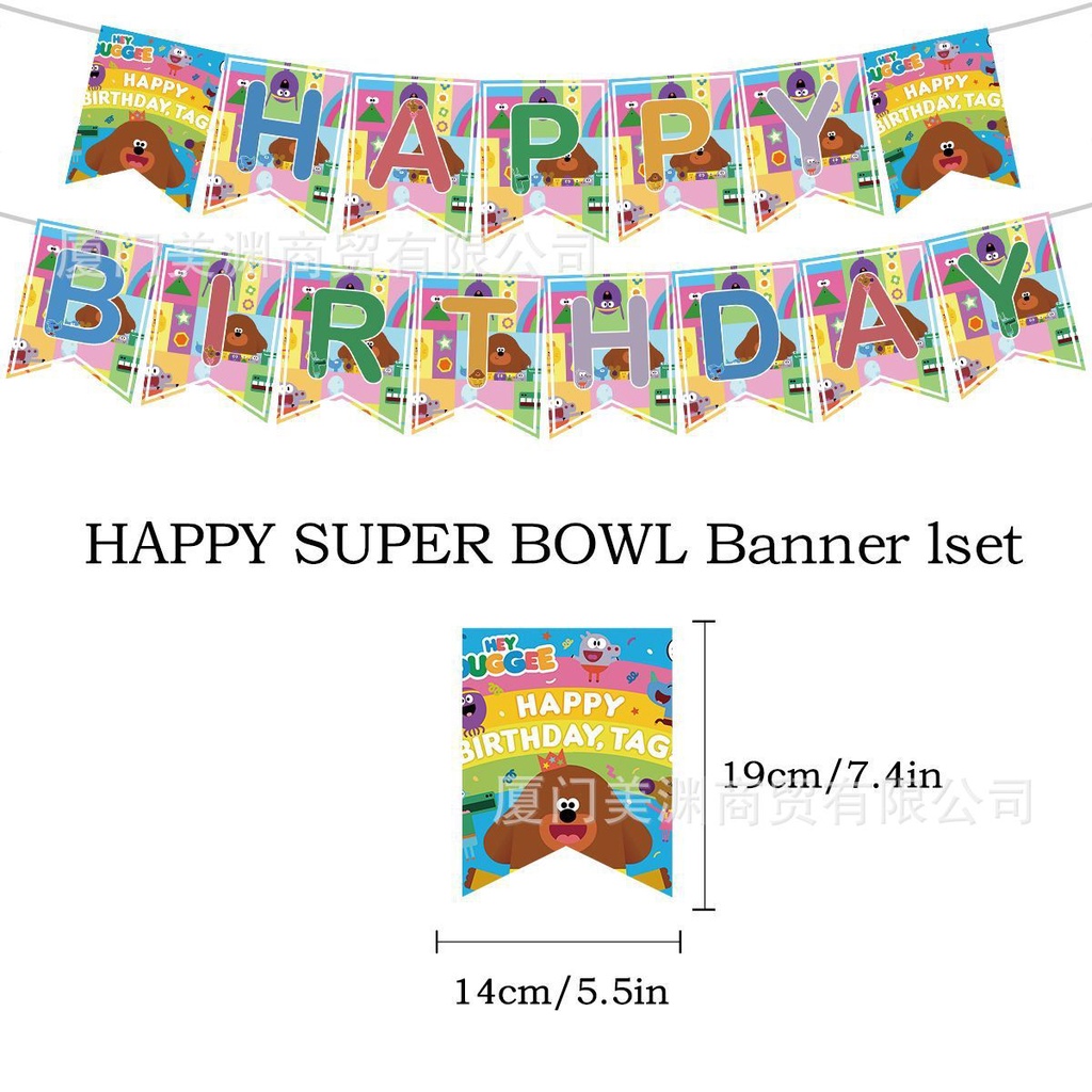 Hey Duggee Theme kids birthday party decorations banner cake topper balloon set supplies