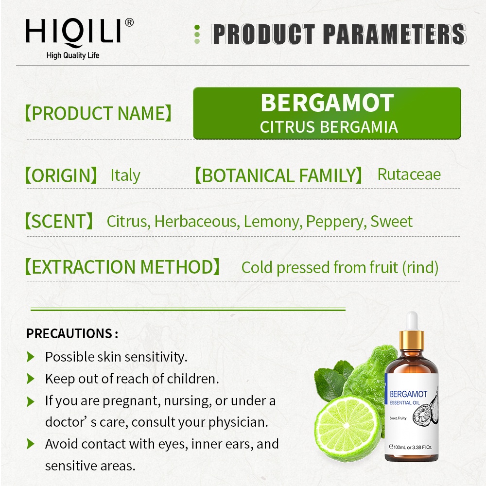 HiQiLi Bergamot Essential Oil 100% Natural Plant Treatment Level Aromatherapy Calming and Uplifting Soap Making Diffuser