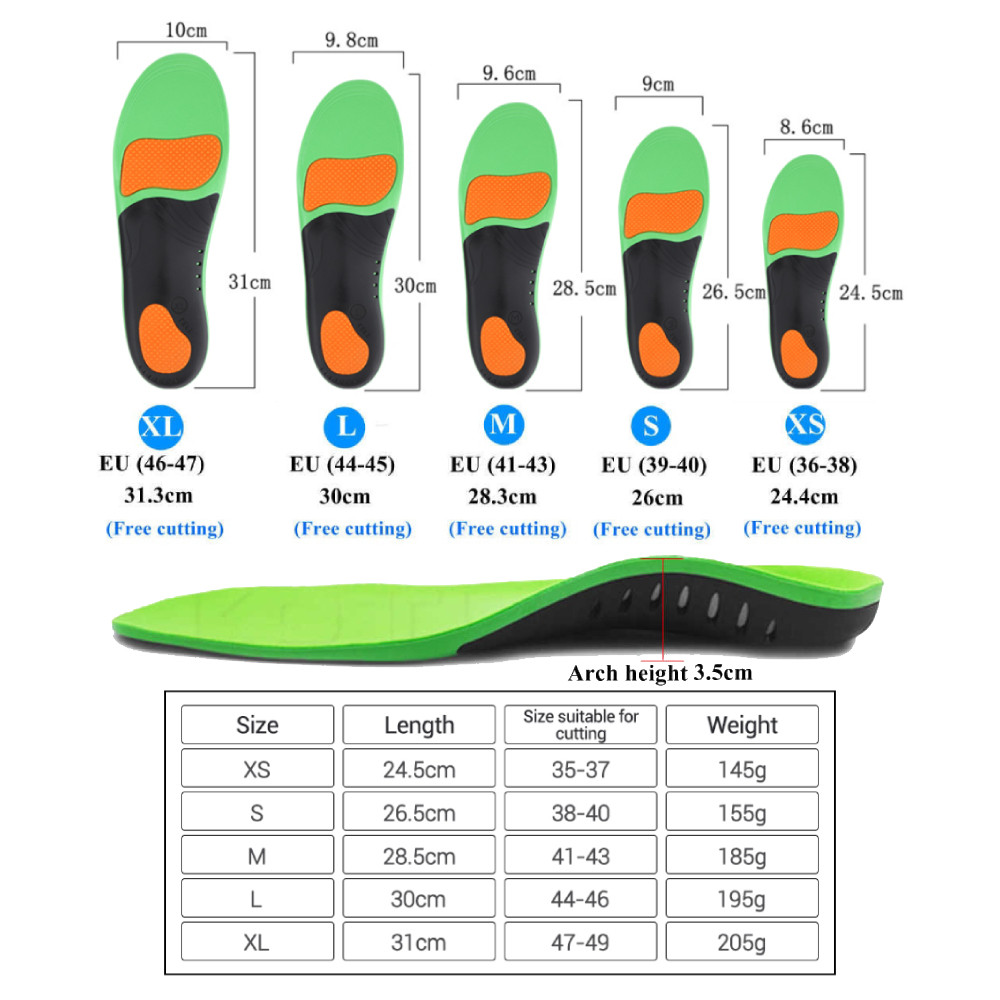High Arch Support Insoles Orthotic Flat Feet PU Gel Shock Absorb Massage Cushion Sports Shoes Insert X/O Type Leg Planta