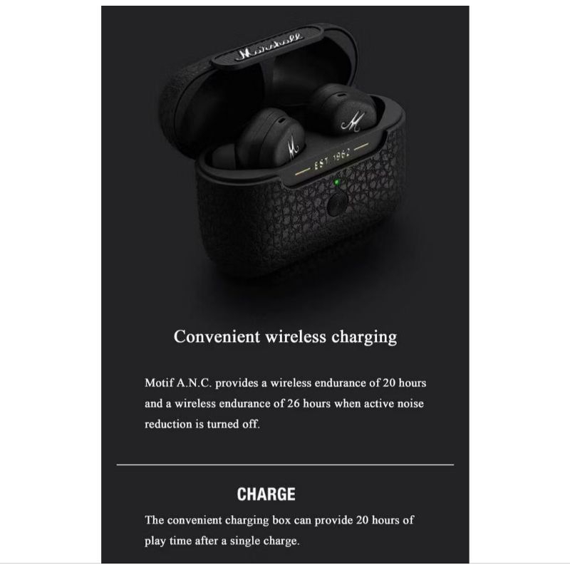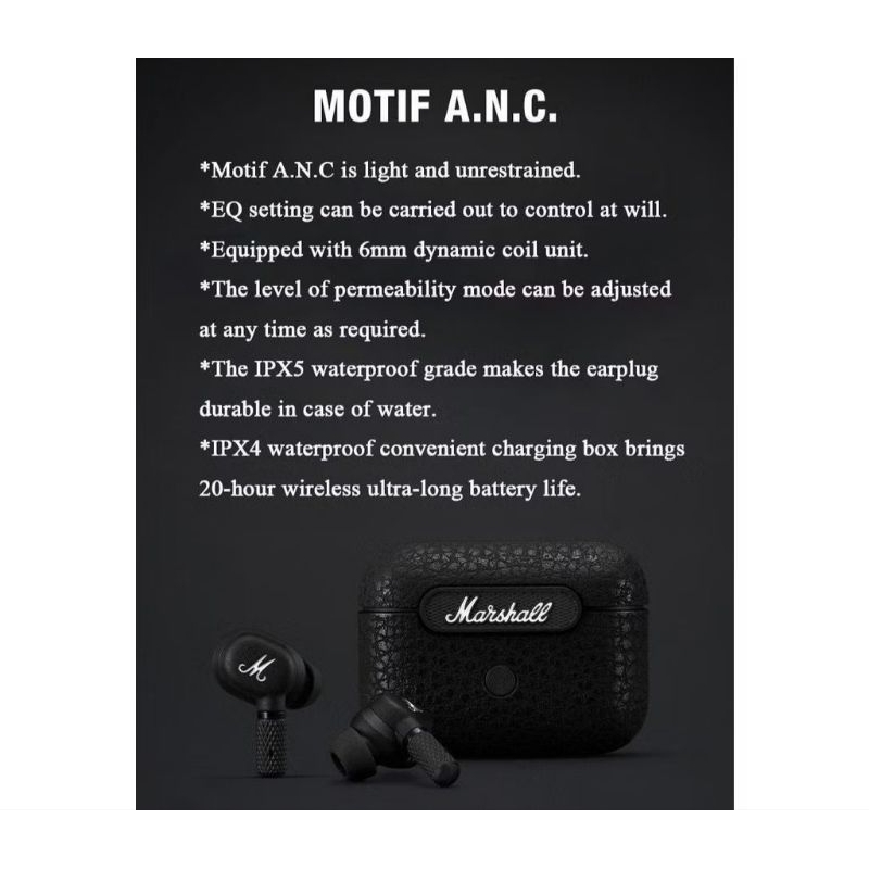 High Quality Marshall Motif A.N.C. Noise cancelling Wireless Earbud Earbuds Earphone Earpiece