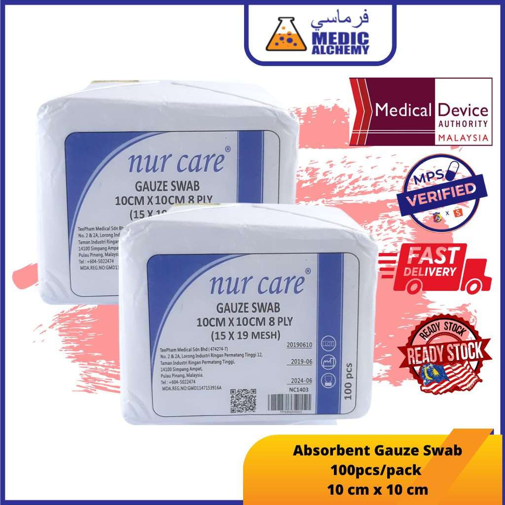 High Quality Non Sterile Absorbent Gauze Swabs 5cm / 7.5cm / 10cm (100pcs/pack) (BRAND NUR CARE/ MEDTOPIA / CAMSTERILE)