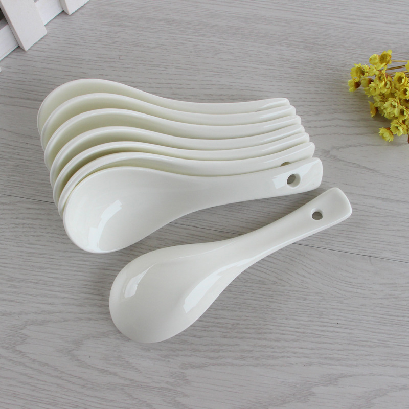 High Quality Pure White Ceramic Spoon Kitchen Restaurant Soup Spoon Household Ceramic Spoon
