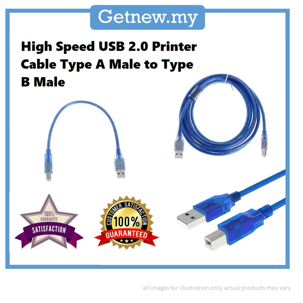 High Speed USB 2.0 Printer Cable Type A Male to Type B Male (1M/3M/5M/10M)