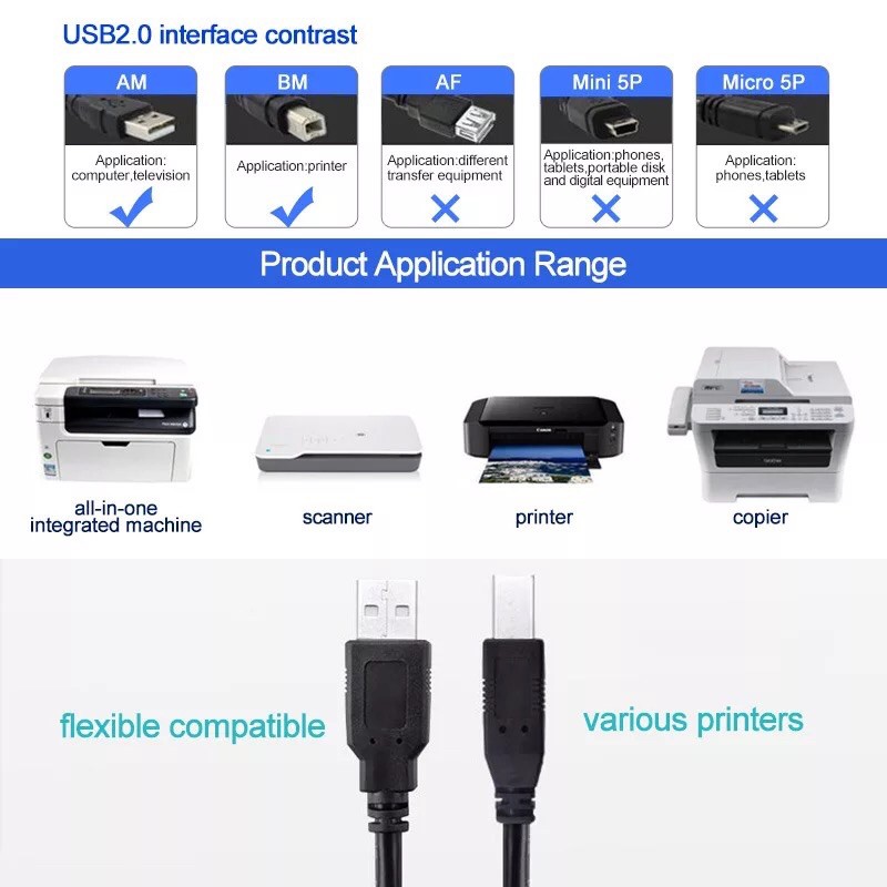 High Speed USB 2.0 Printer Scanner Data Cable Type A Male To Type B Male Cable Cord (1.5M/3M/5M/10M)