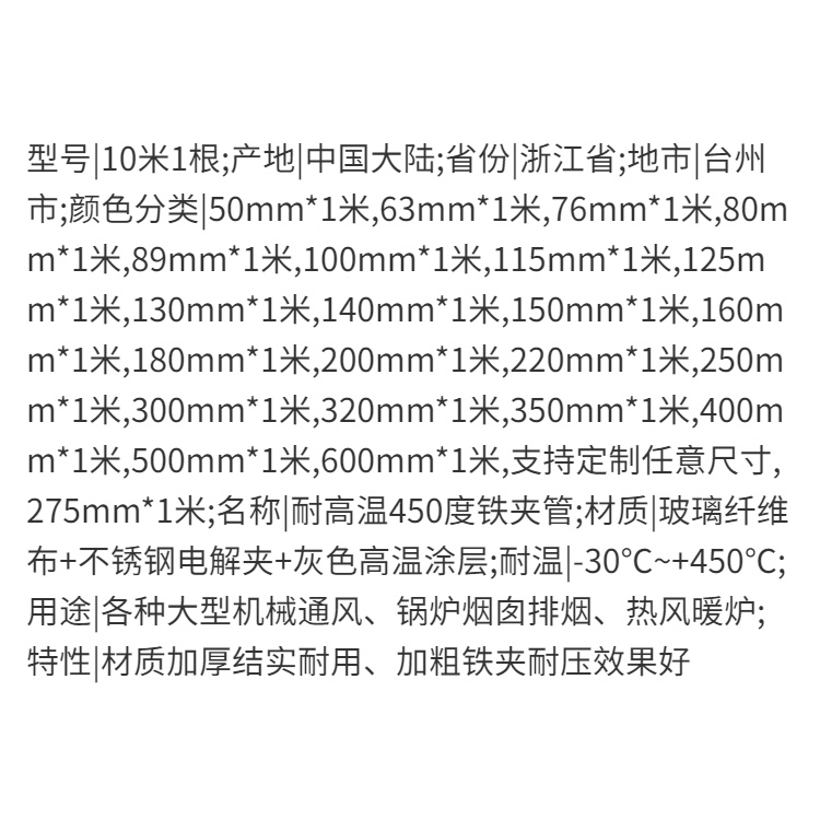 High Temperature Resistance 450 Degrees Iron Clamp Pipe Ventilation Pipe Exhaust Hose High Temperature Air Duct Industrial Fire Retardant Extension Tube-Extractor Fan Blower Ventilation Portable Exhaust Duct Hose