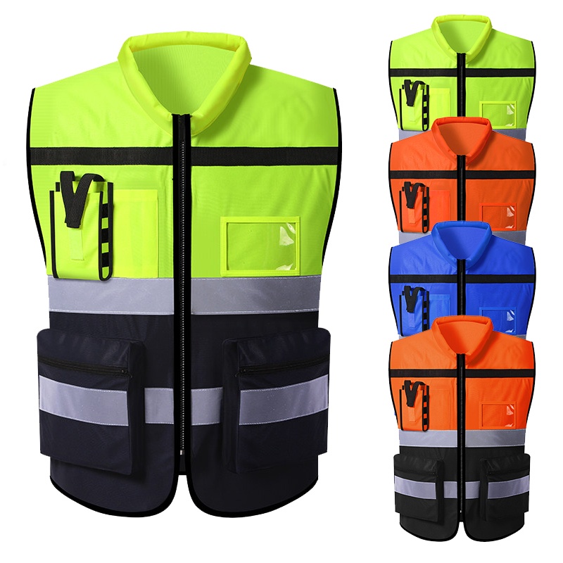 High Visibility Security Reflective Vest Multi Pockets Reflective Vest Outdoor Traffic Safety Cycling Wear