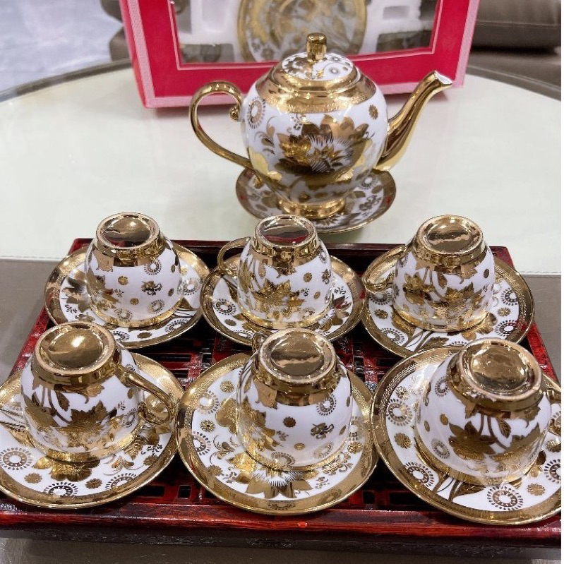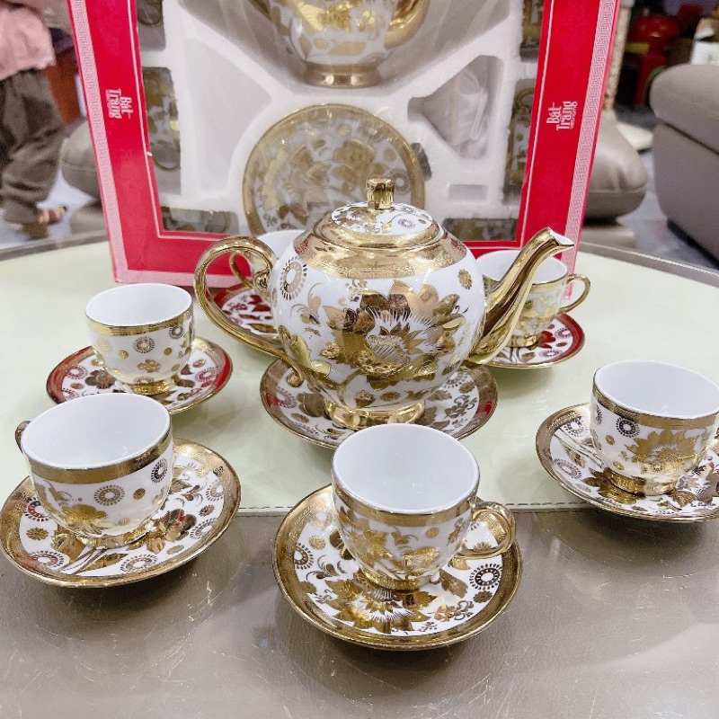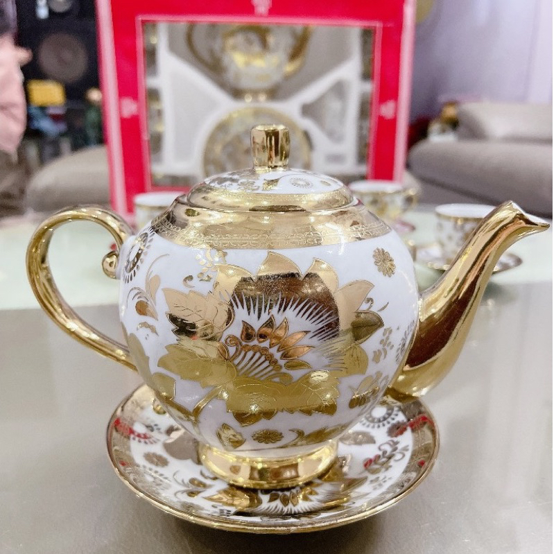 High-end royal tea set, set of 1 6-cup tea pot with saucer Porcelain teapot set