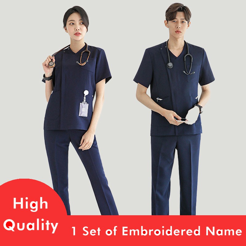 High-quality Medical Scrub Suit with Side Zipper for Man&Women, Nurse Doctor Dentist Uniform Clinic Hospital Overalls Nursing Clothes Surgical Gown