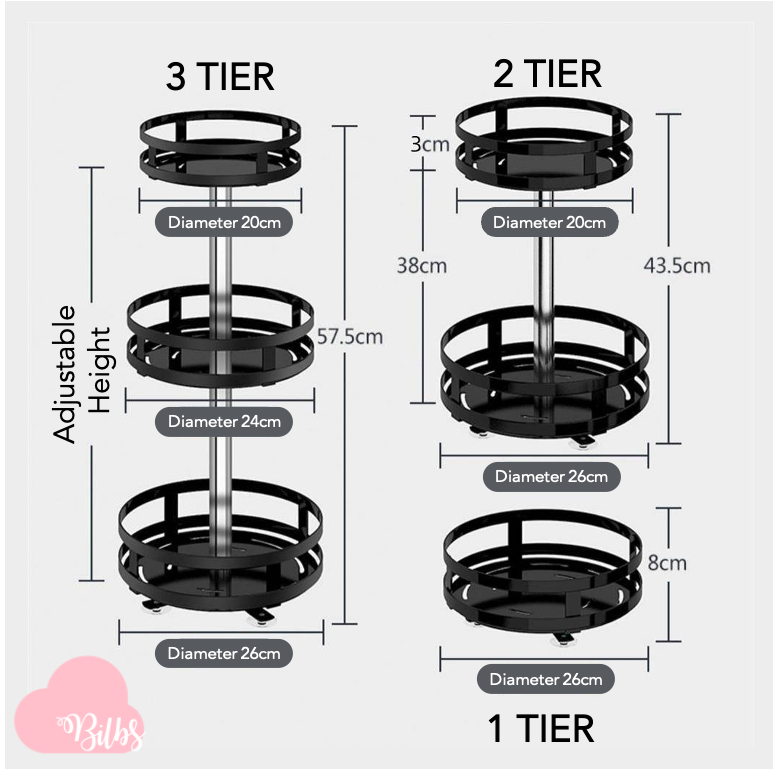 High quality stainless steel 3 tier kitchen 360 swivel rotating tray organizer condiments organiser rack