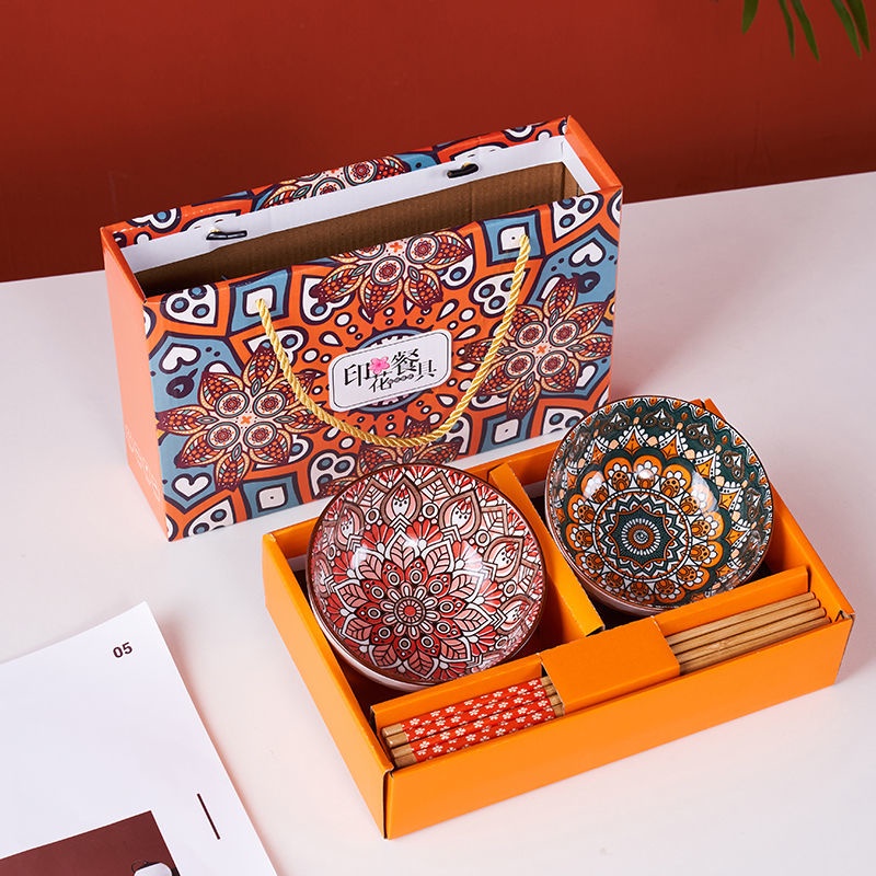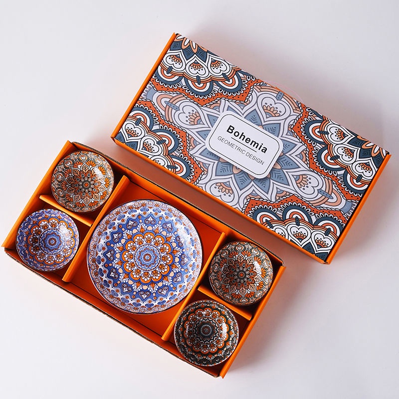 High-value bohemian bowls, chopsticks, spoons, plates, ceramic tableware, full set, household eating bowls, gift boxes, wholesale- Bohemian Tableware - Kitchen Supplies