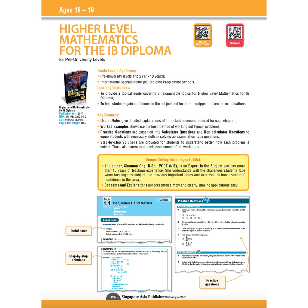 Higher Level Mathematics for the IB Diploma | Revision | Pre-University Maths School Assessment Books - SAP